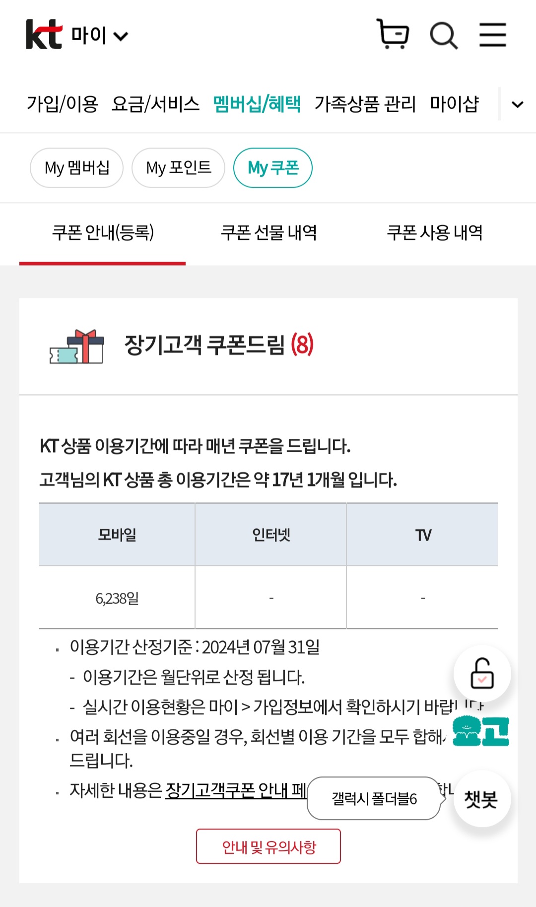 KT는 장기 이용고객에게 장기고객 쿠폰드림 이벤트를 하고 있는데 그 쿠폰을 사용하는 방법을 공유해 본다.