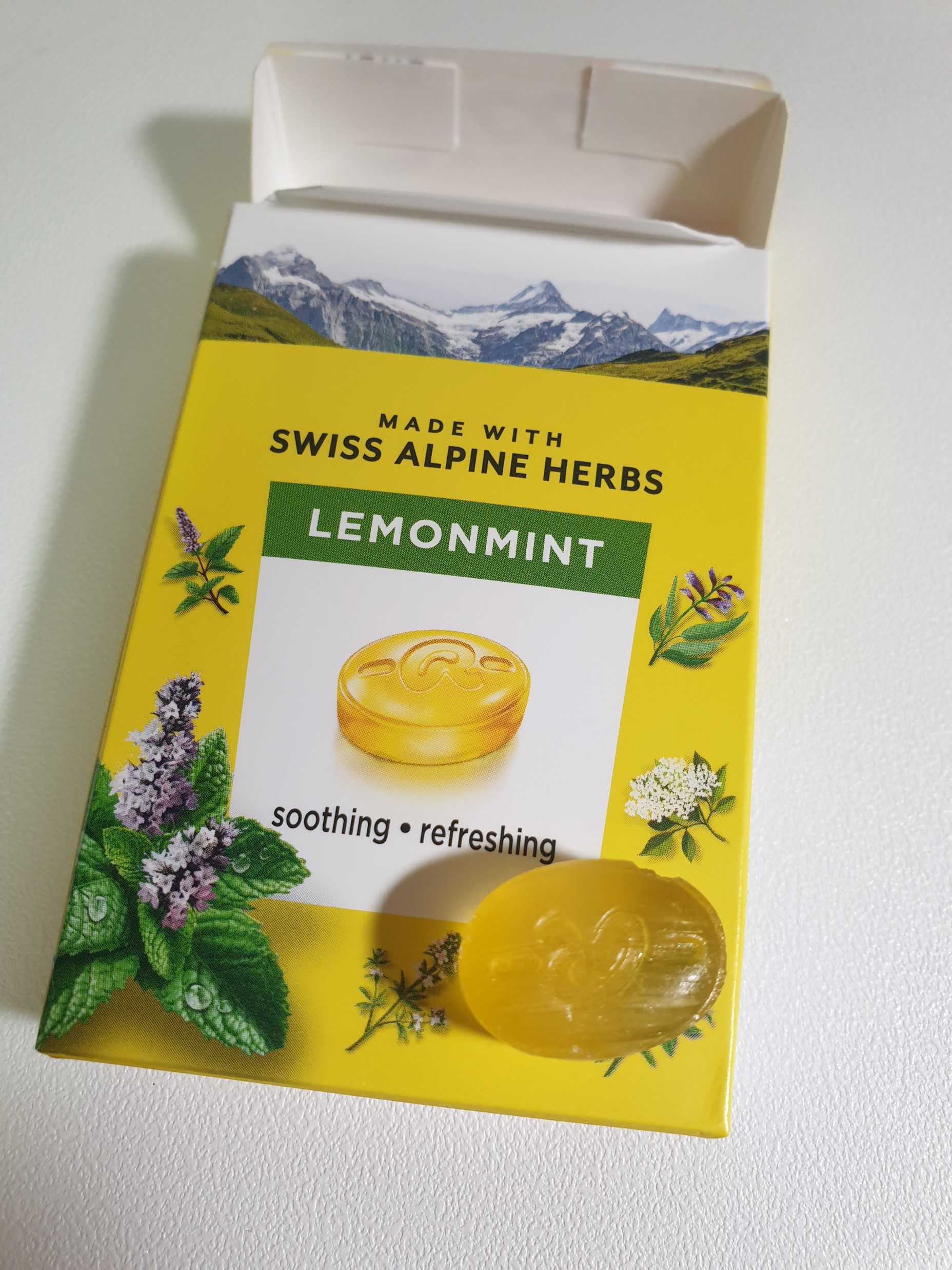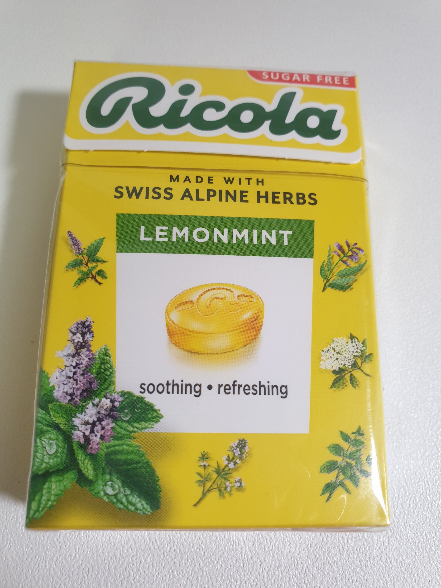 포장지 그림처럼 리콜라 캔디는 노란색이고 먼저 레몬 맛이 나고 허브향이 난다.