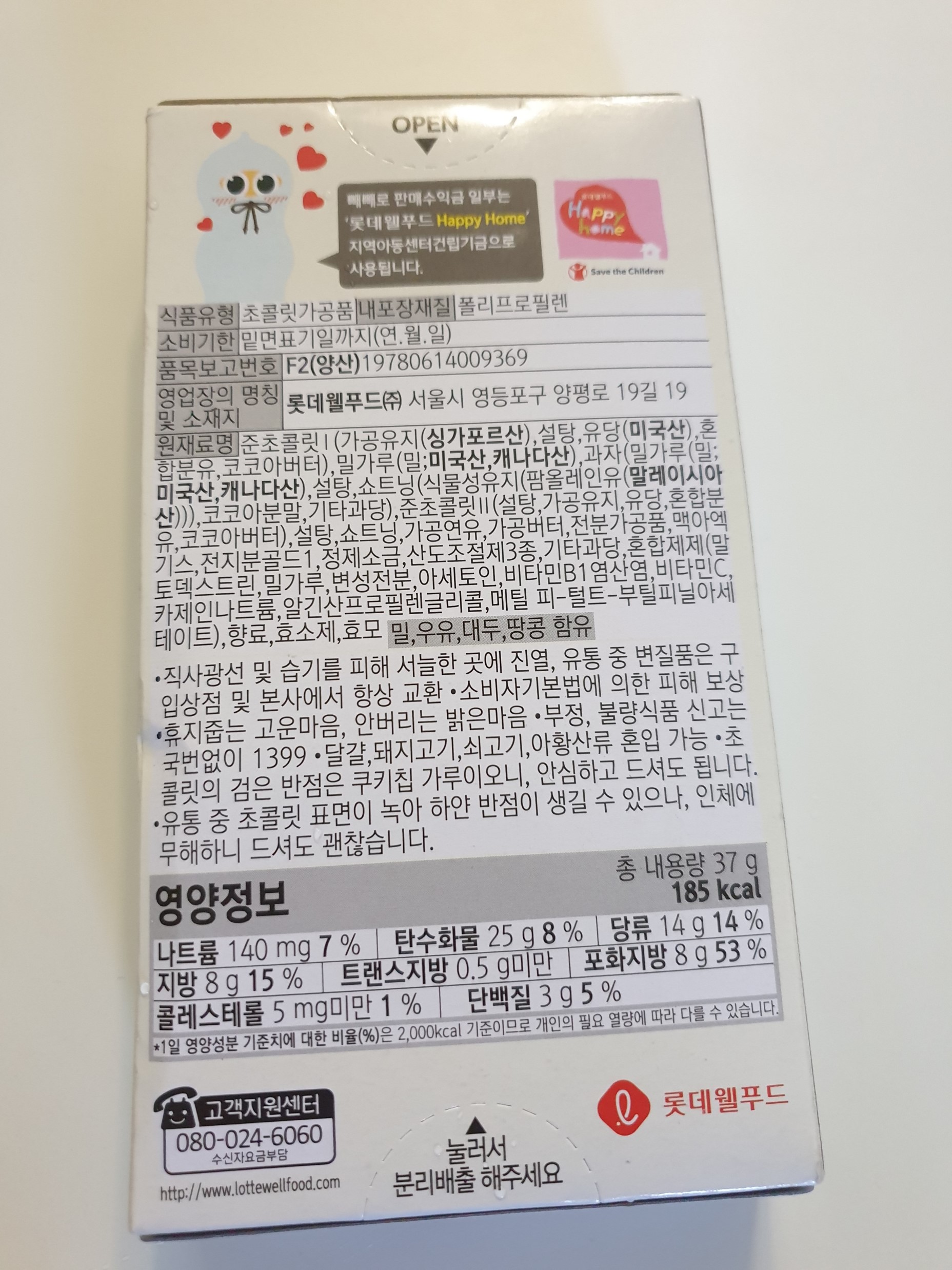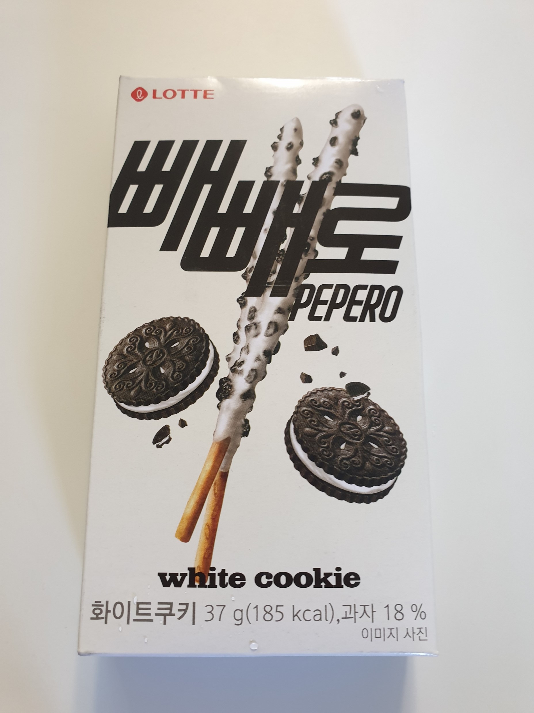 롯데 빼빼로 화이트 쿠키 칼로리는 37g에 185kcal였다.