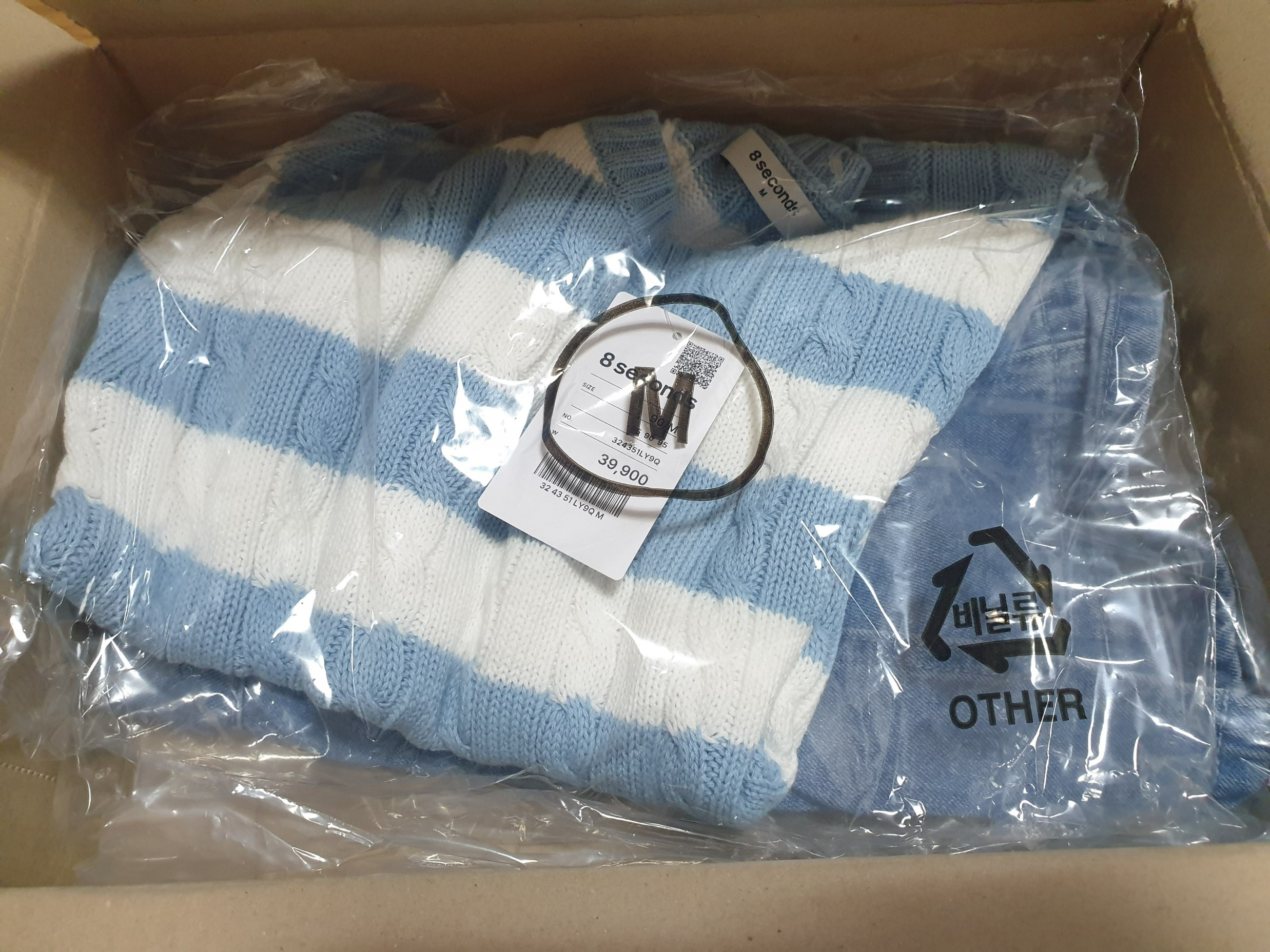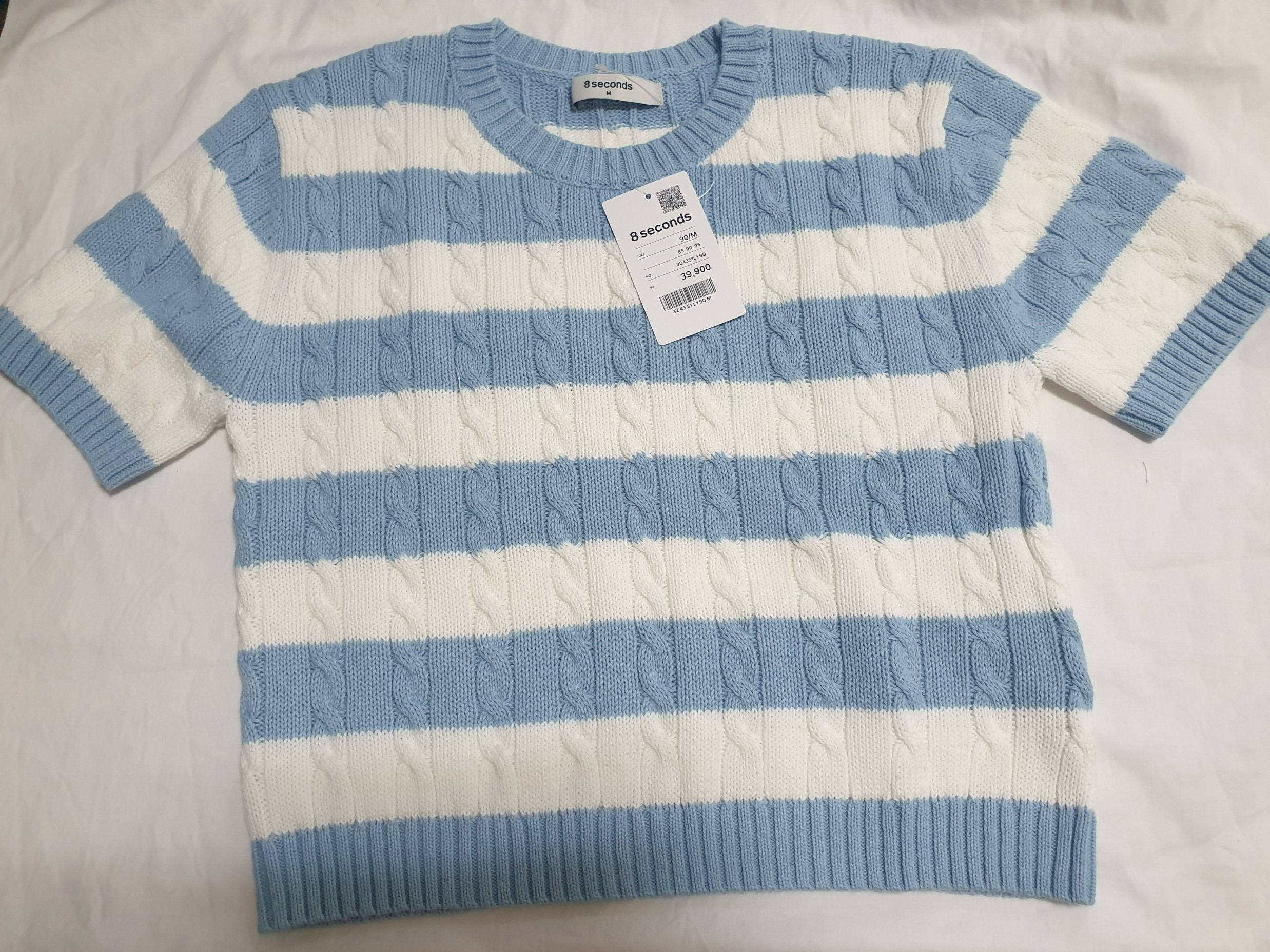 줄무늬 반팔 스웨터인데 지금 입기에는 더워서 기온이 좀 내리면 입고 다니려고 한다.
