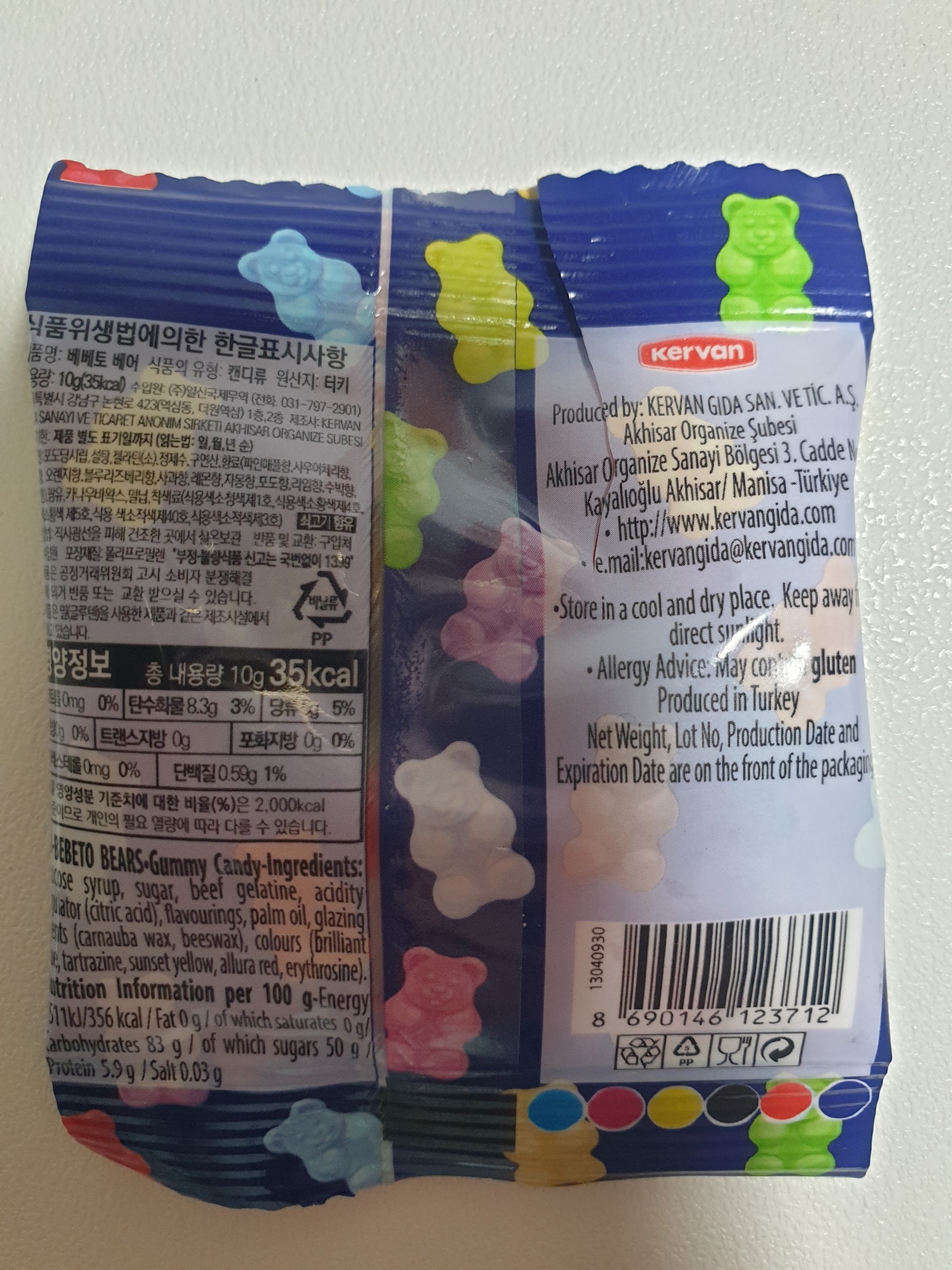 작은 포장지에 몇 개 안 들어있는 곰젤리라서 하리보인줄 알았는데 하리보가 아니라 터키 원산지의 BEBETO BEARS 젤리였다.