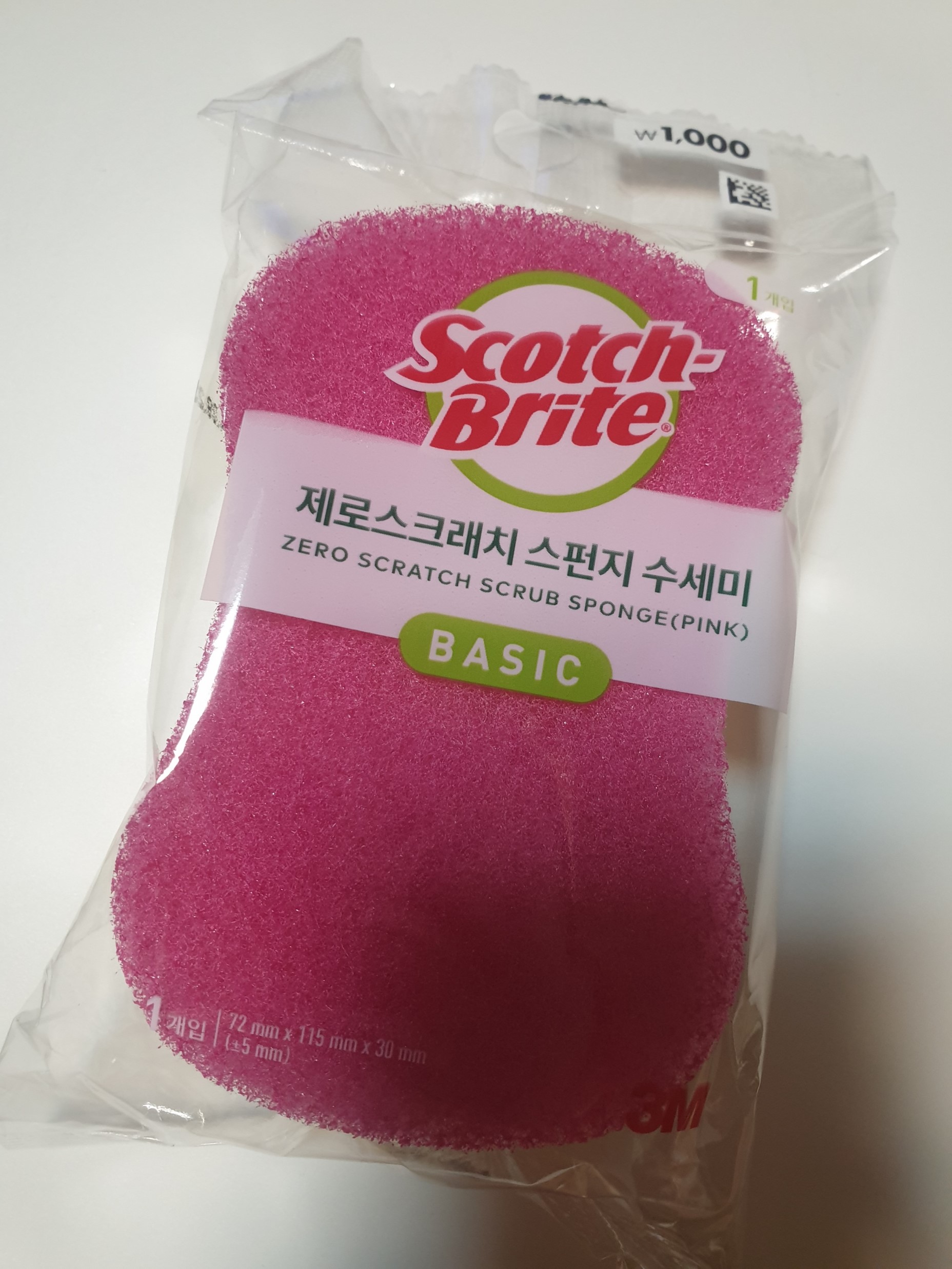 스펀지가 필요해서 다이소에서 스카치브라이트 제로스크래치 스펀지 수세미를 샀다. 이 스펀지는 설거지 용 스펀지인데 설거지할 것은 아니고 다른 용도로 사용할 스펀지가 필요했는데 이게 제일 적절해보였다.