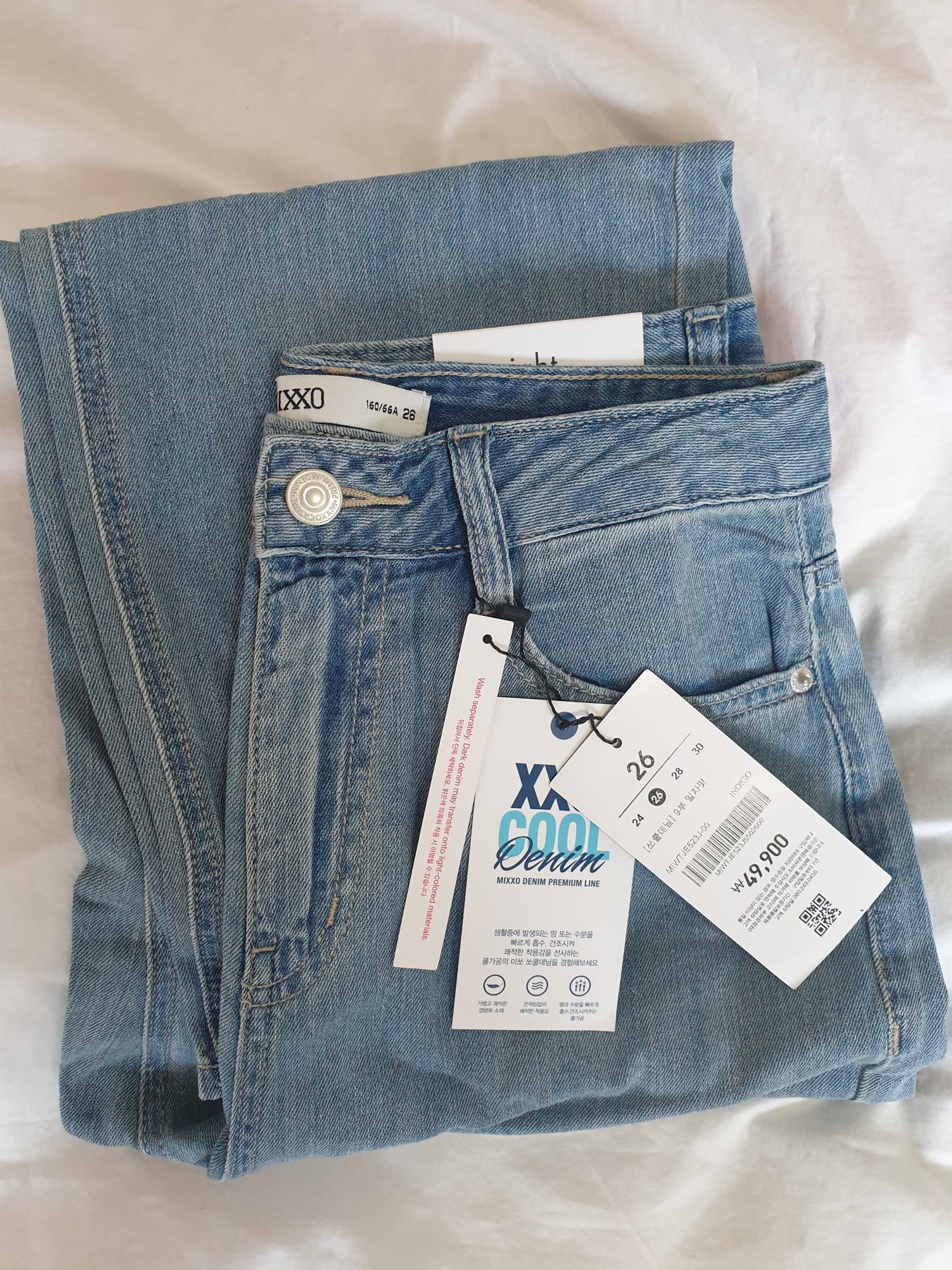 25가 있었으면 좋았을텐데 미쏘 바지 사이즈는 2 단위로 24, 26, 28 이렇게 있어서 아쉬웠다.