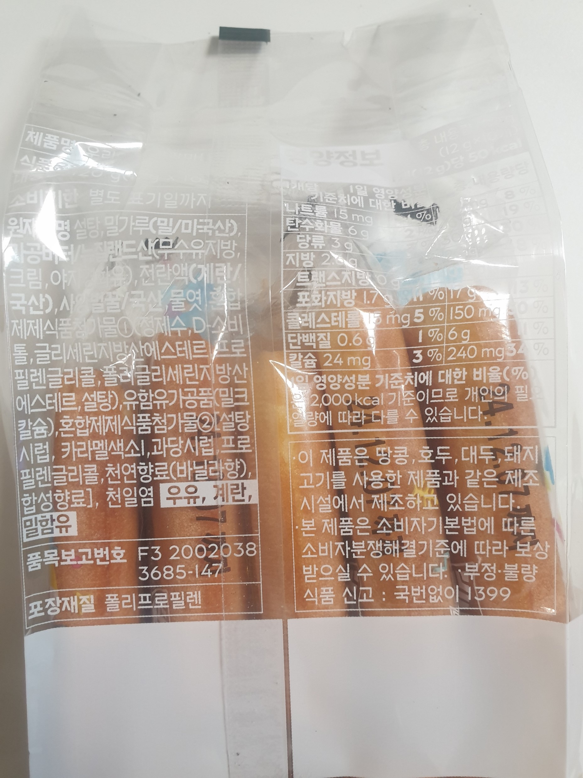 칼로리는 1개당 50kcal, 당류 3g, 칼슘 24mg이 포함되어 있다.