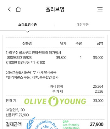 올리브영 세일 때 라우쉬 콜츠푸트 샴푸 가격은 200ml 2개에 29,900원이었는데 2천 원 할인 쿠폰이 있어서 27,900원에 샀다. 또 올리브영 5% 할인되는 카드로 샀기 때문에 개당 13,252.5원에 샀다.