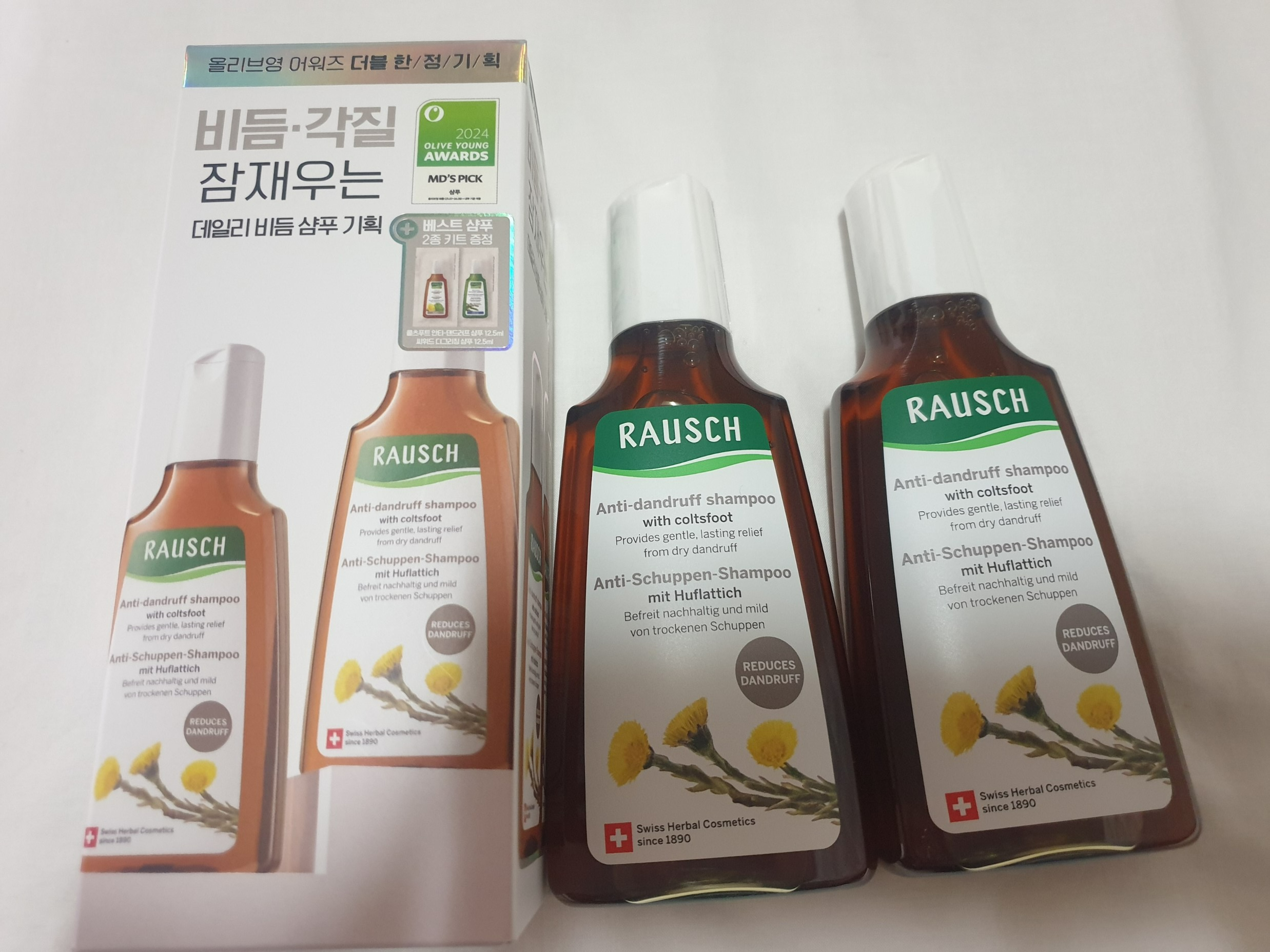 라우쉬 콜츠푸트 안티 댄드러프 샴푸는 200ml이고 낱개로 판매하는데 이번에 구매한 것은 올리브영 어워즈 더블 한정기획 상품이다. 샴푸를 거의 다 써가서 네이버 스토어랑 올리브영 가격을 비교해 봤는데 올리브영 기획상품이 더 쌌다.