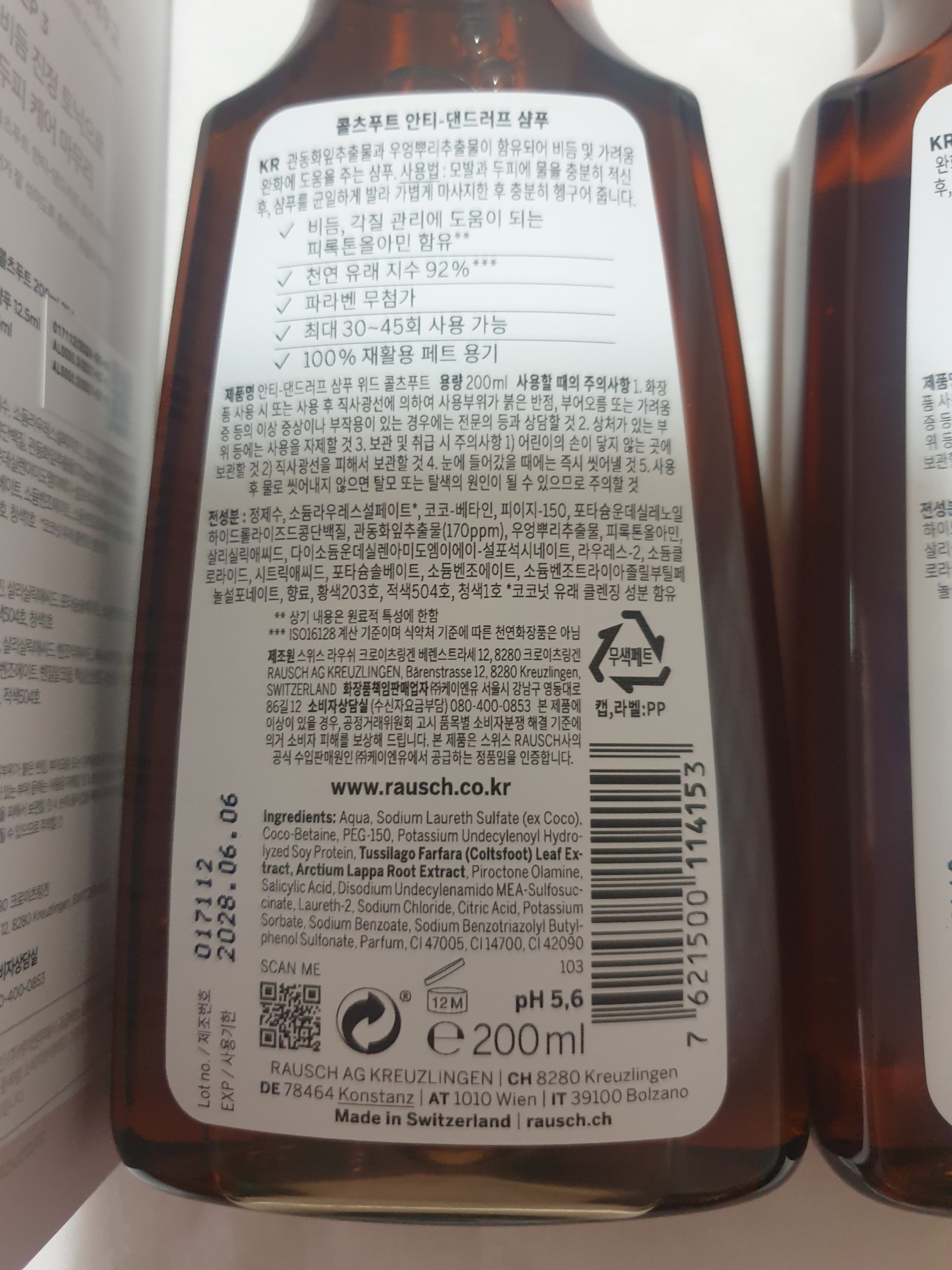 콜츠푸트 안티댄드러프 샴푸 성분은 사진을 참고.