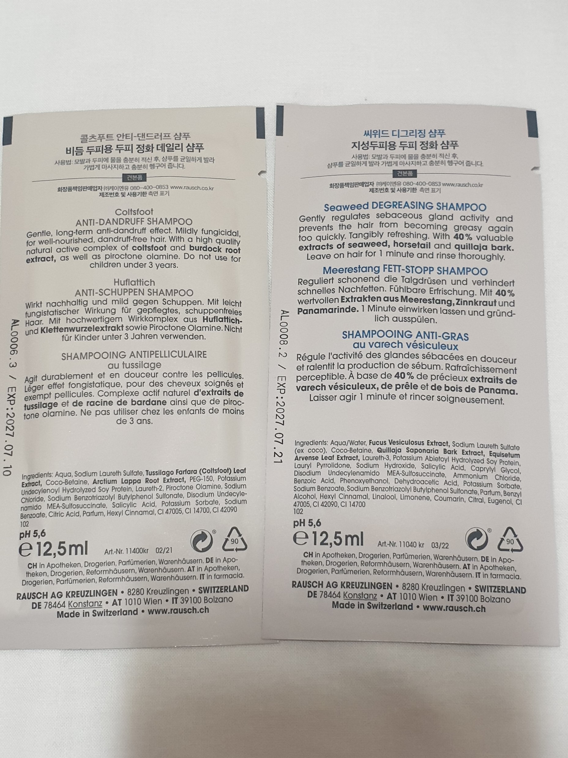 올리브영 어워즈 한정 기획은 콜츠푸트 안티 댄드러프 샴푸 200ml 2개, 콜츠푸트 안티 댄드러프 샴푸 샘플 12.5ml, 씨위드 디그리징 샴푸 12.5ml 샘플이다.