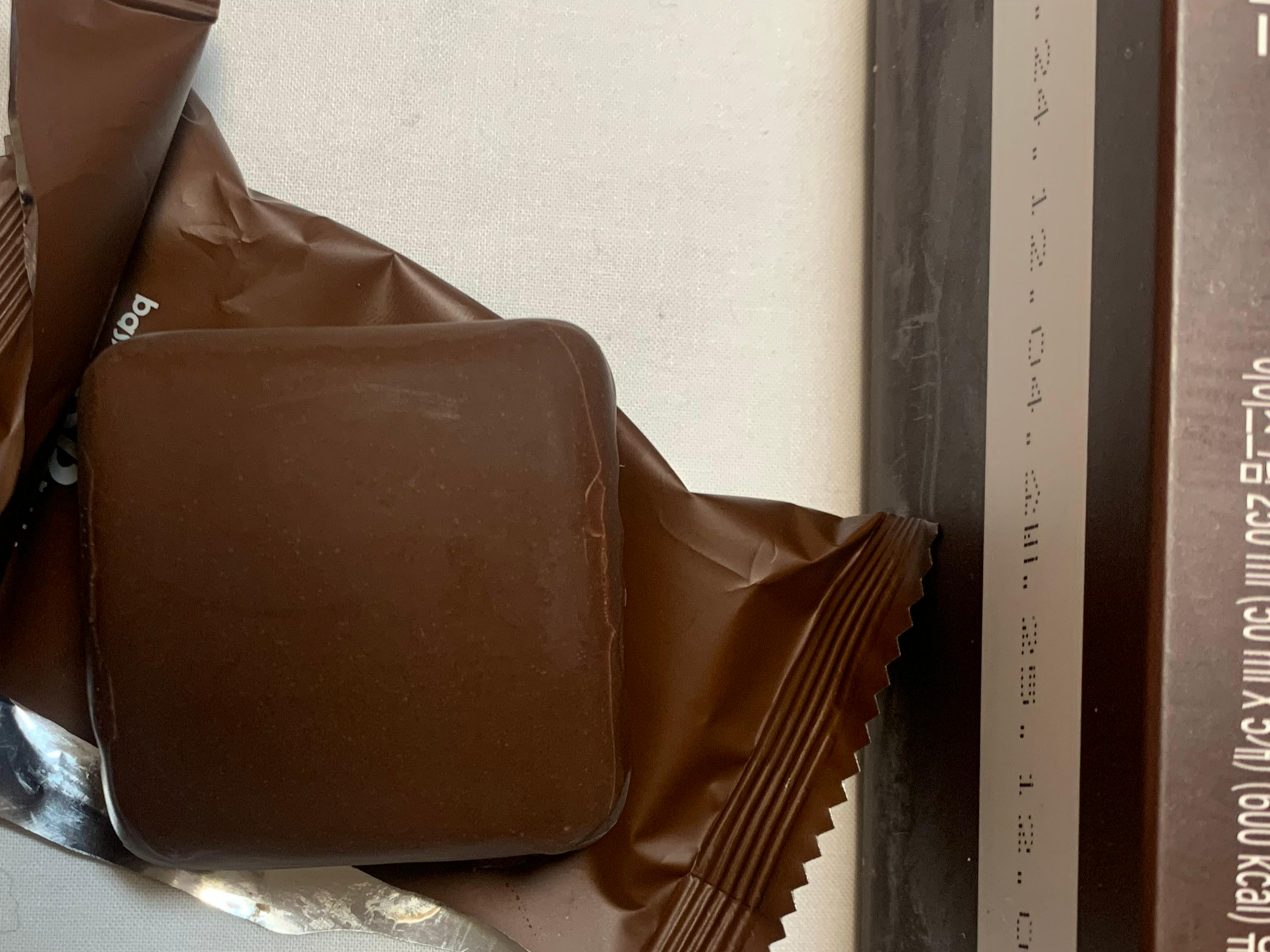 개별포장되어 있는 포장지를 뜯어보면 모양은 오예스처럼 정사각형인데 모서리는 둥글다.