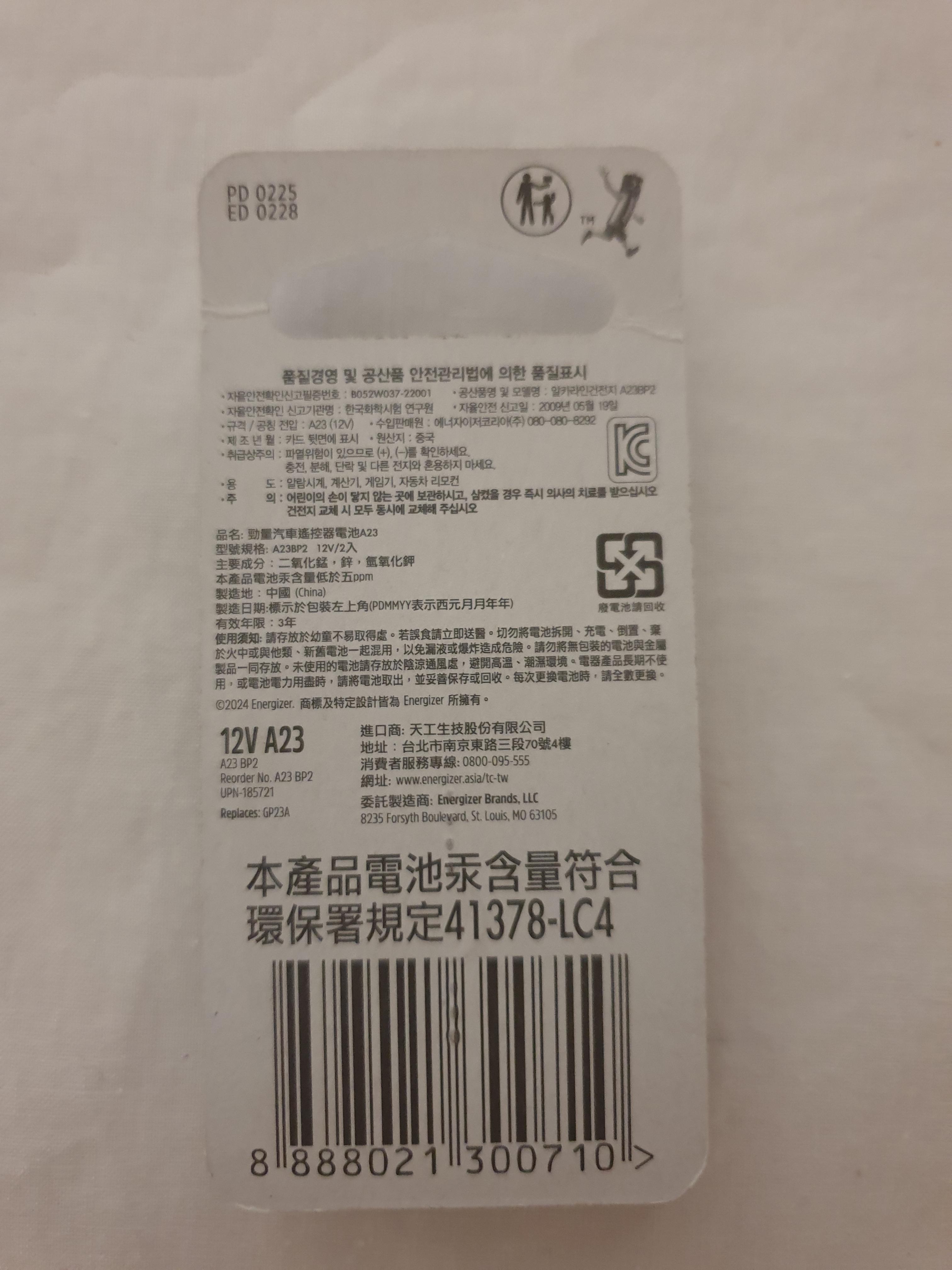 에너자이저 A23 건전지를 샀다. 예전에 산 중국산 작은 조명이 있는데 거기 들어가는 게 이 건전지였다.