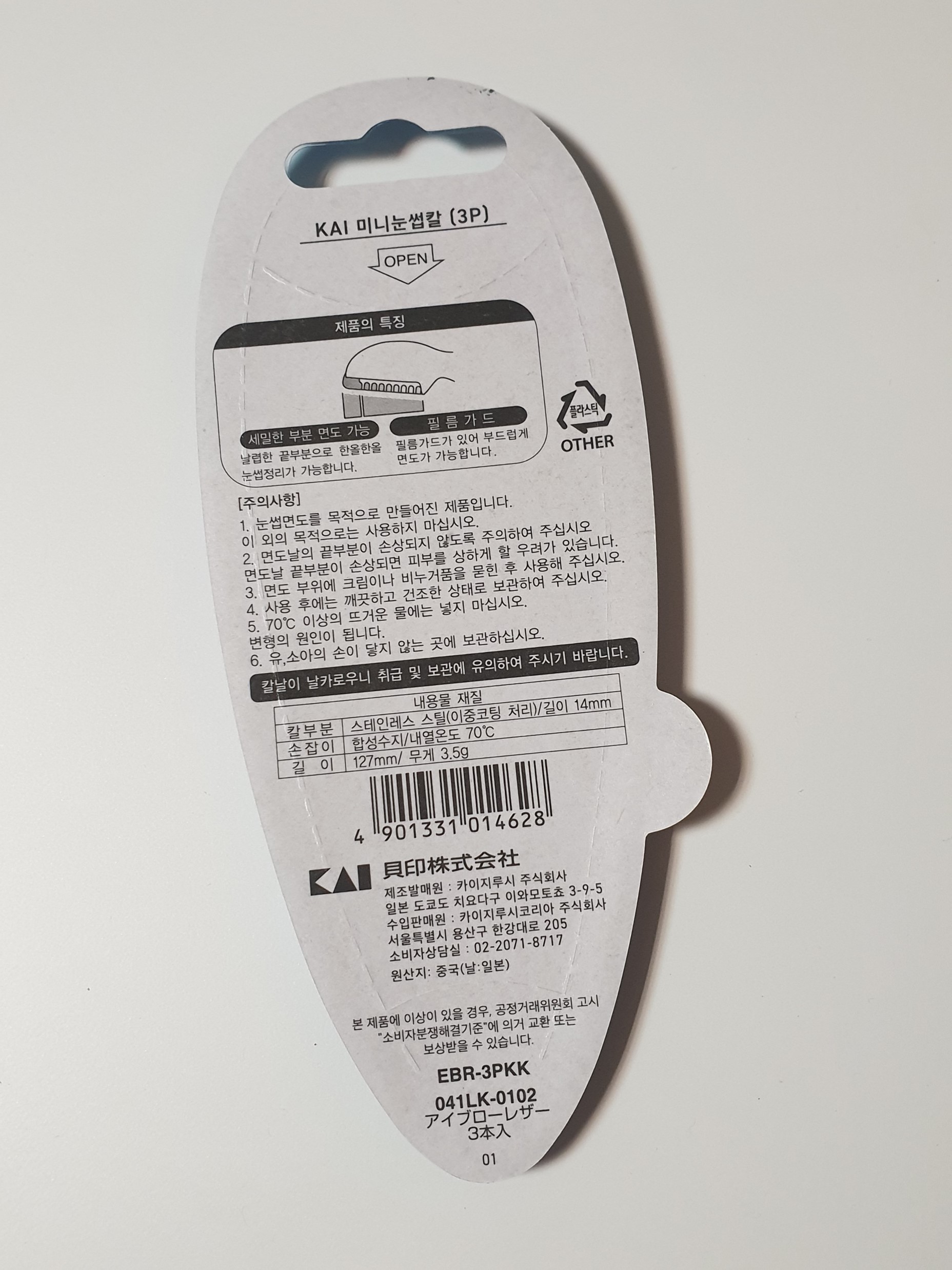 카이 미니눈썹칼 원산지는 중국인데 날은 일본산이다.
