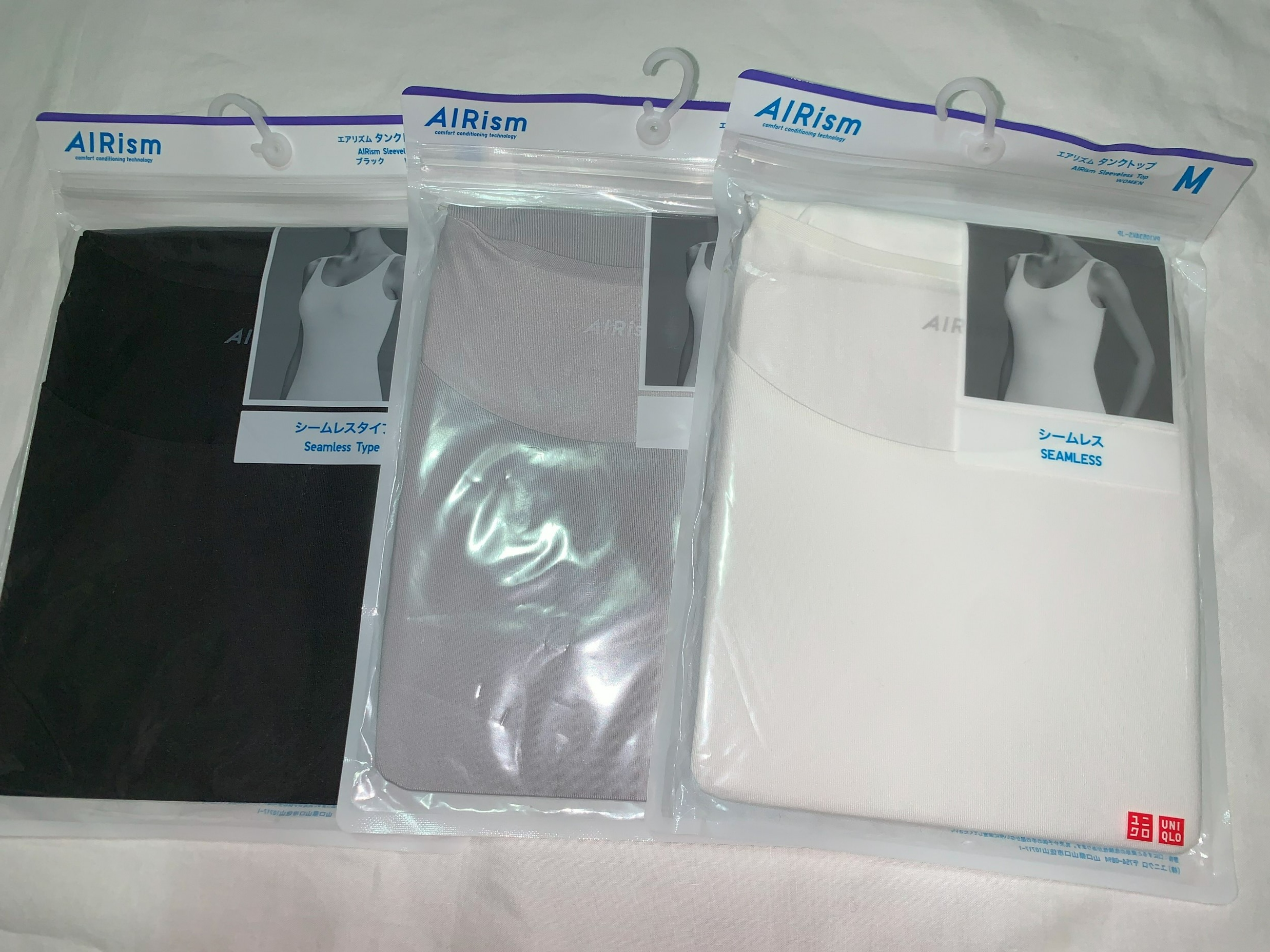 유니클로 에어리즘 나시는 여러 색으로 나오는데 검은색, 회색, 흰색을 샀다.