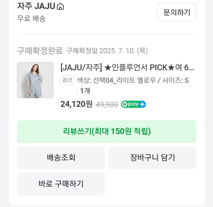 이 잠옷을 자주 쇼핑몰에서 봤는데 네이버 스토어를 보니까 3만 원대에 할인하고 있어서 로그인을 하니까 브랜드 첫 구매라고 할인 쿠폰을 더 줘서 24,120원에 샀다. 하루 입어보니까 옷은 편하고 좋은데 계속 입고 여러 번 빨았을 때 괜찮으면 하나 더 사려고 한다.