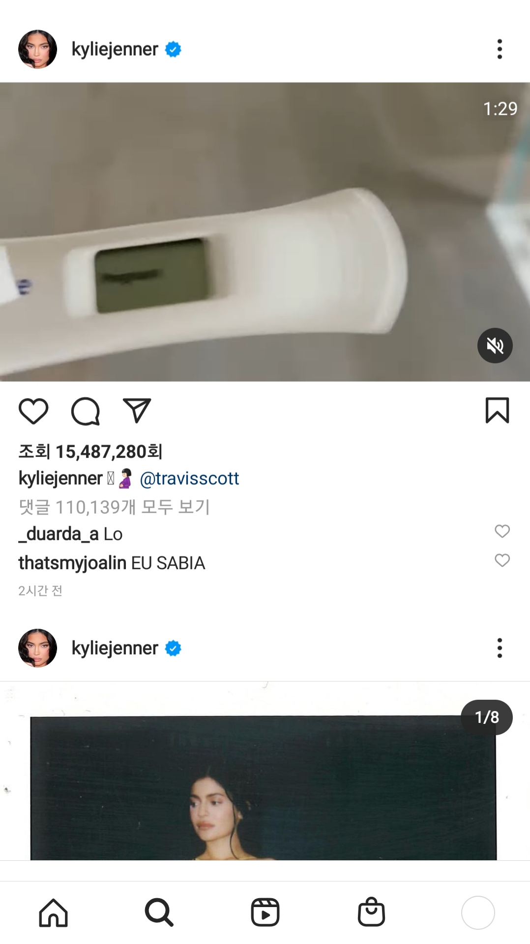 카일리 제너가 인스타그램에서 직접 둘째 임신을 알리는 영상을 올렸다.