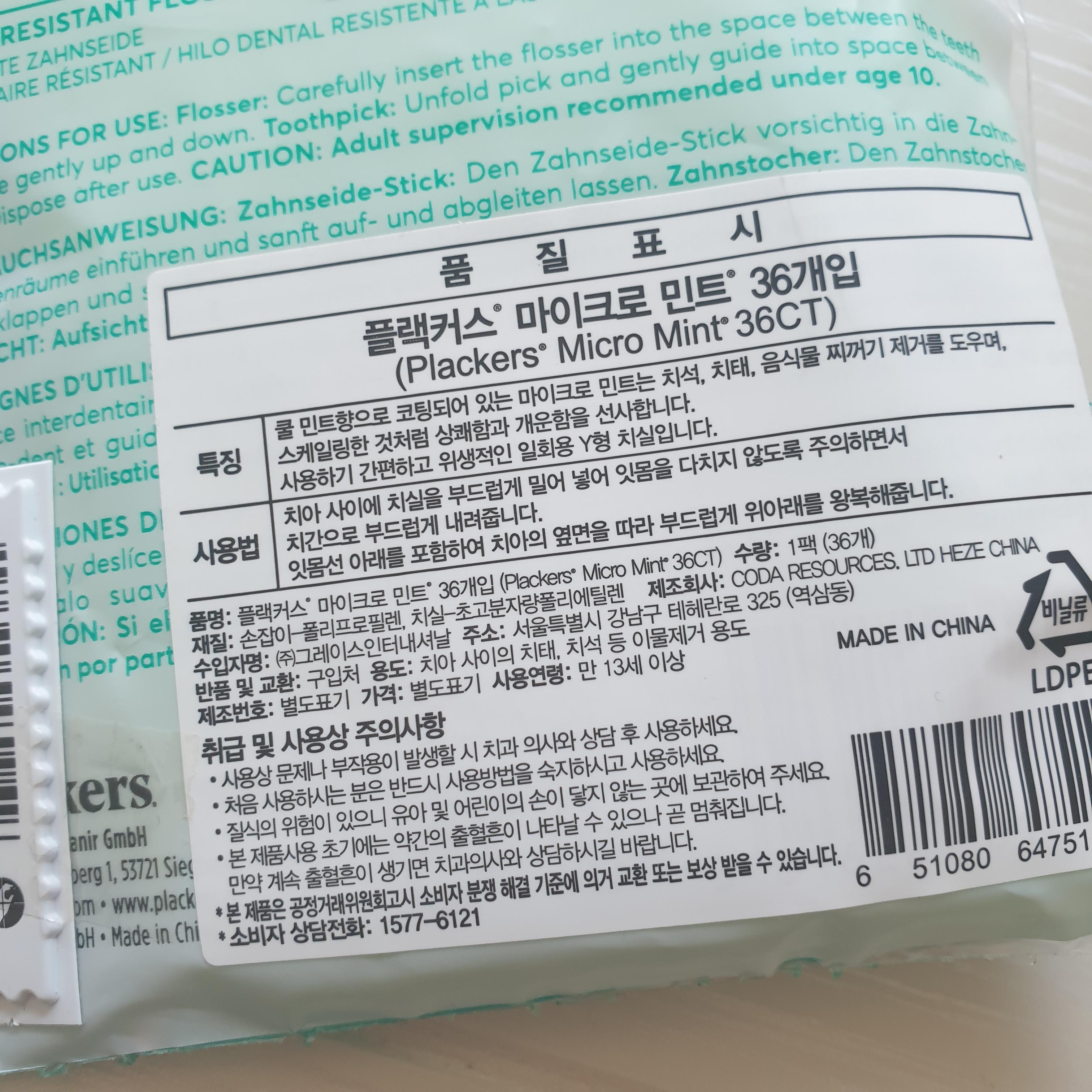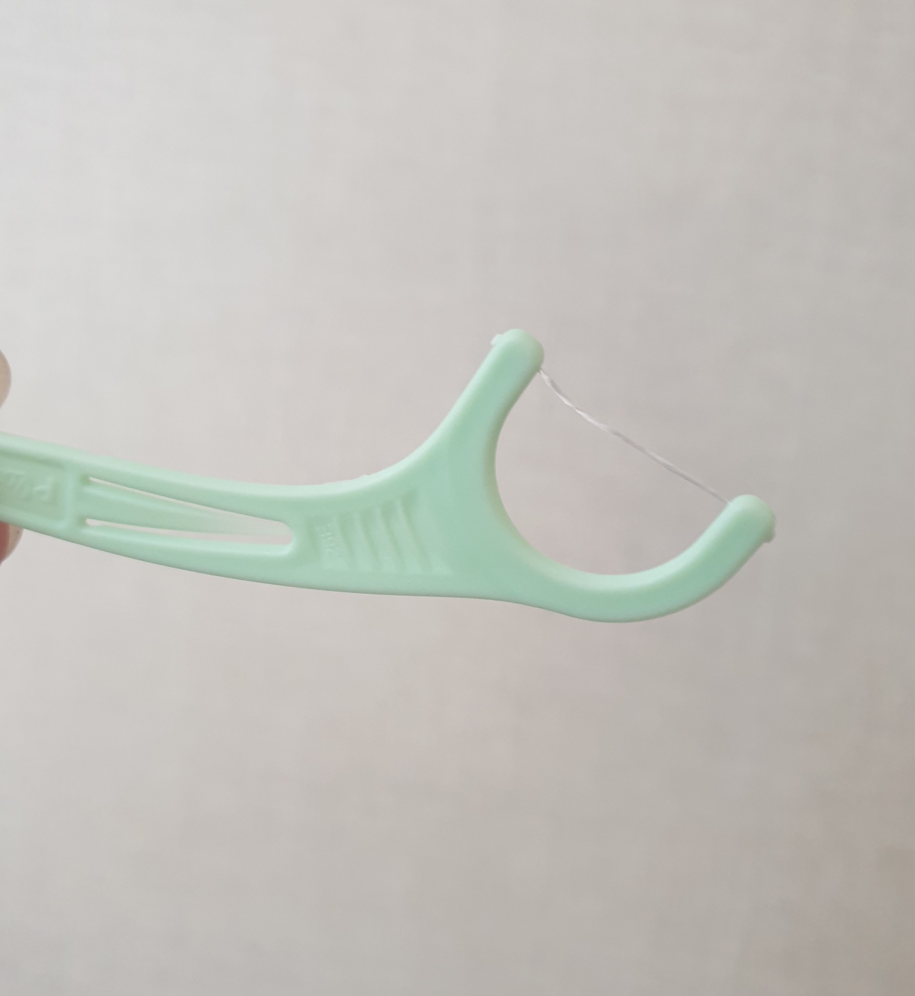 인생은 치실을 사용하기 전과 후로 나뉜다. 양치를 해도 개운하지 않고, 나이가 먹으니까 이가 망가지면서 치실의 중요성을 느끼게 되었다. 그래서 일반 치실과 다른 플랙커스 치실을 사용해보았다. 플라스틱 사이에 실이 엮여있는 구조이다. 실에는 민트향이 난다. 아랫부분은 굽혀서 이쑤시개로 사용할 수 있다. 그런데 이쑤시개 쓰면 이가 벌어진다는 말이 있어서 이쑤시개 사용은 지양하고 있다.
